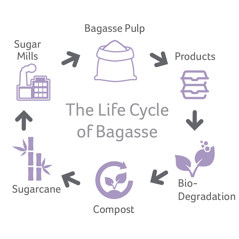 This material is made of sugarcane’s extract residue - instead of being thrown away or burned. When the bagasse is subjected to high pressure and temperature, it can be moulded into plates, bowls, cups, take-away containers, trays, etc.