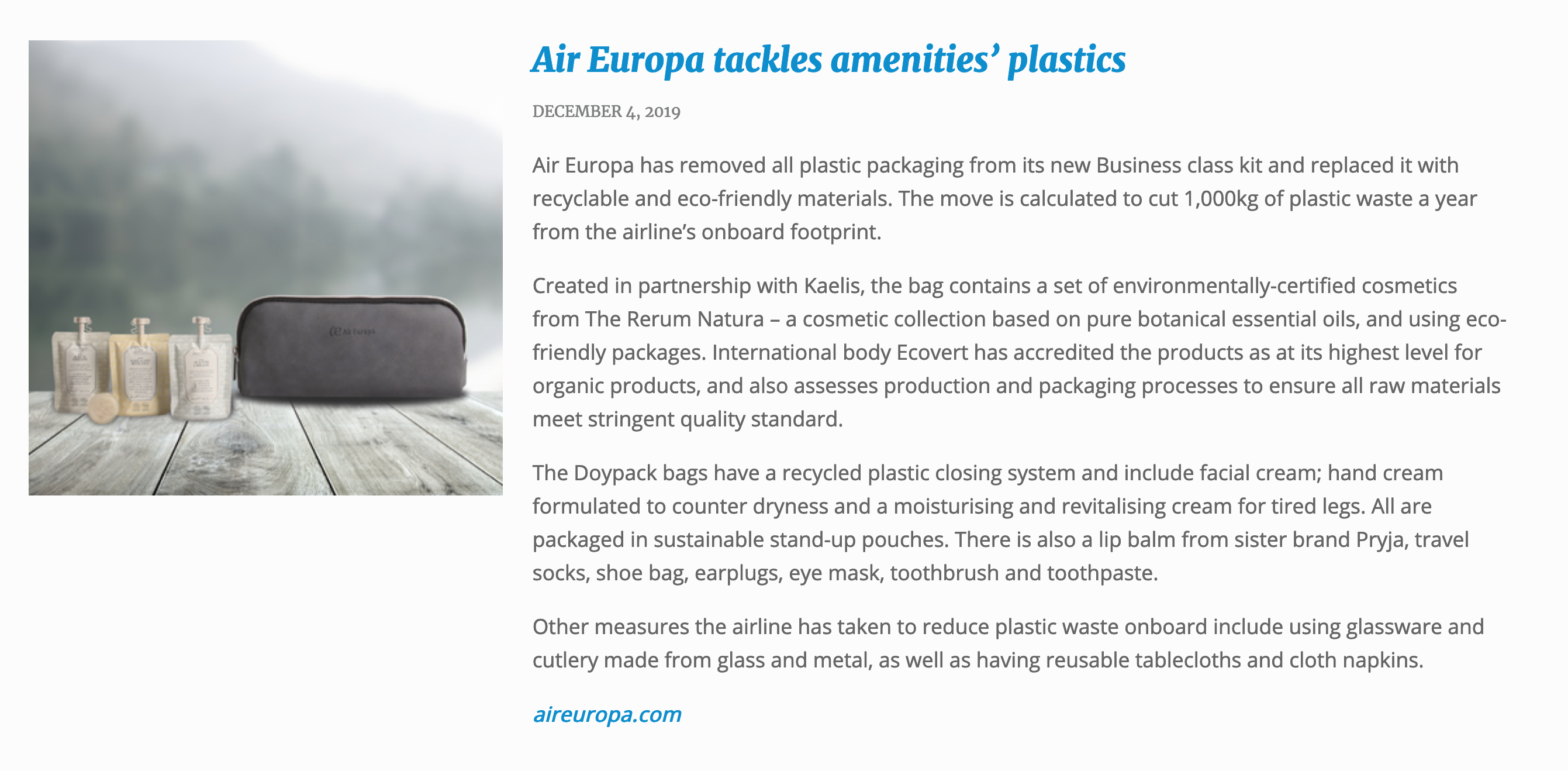 Air Europa and Kaelis reveal eco-friendly amenity kit