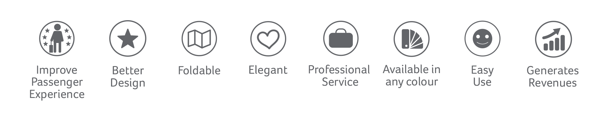 The cover is easy to assemble by adjusting the velcro strip at the bottom of the trolley. Besides, it can be easily stored inside the airplanes' standard units, trolleys or galleys.