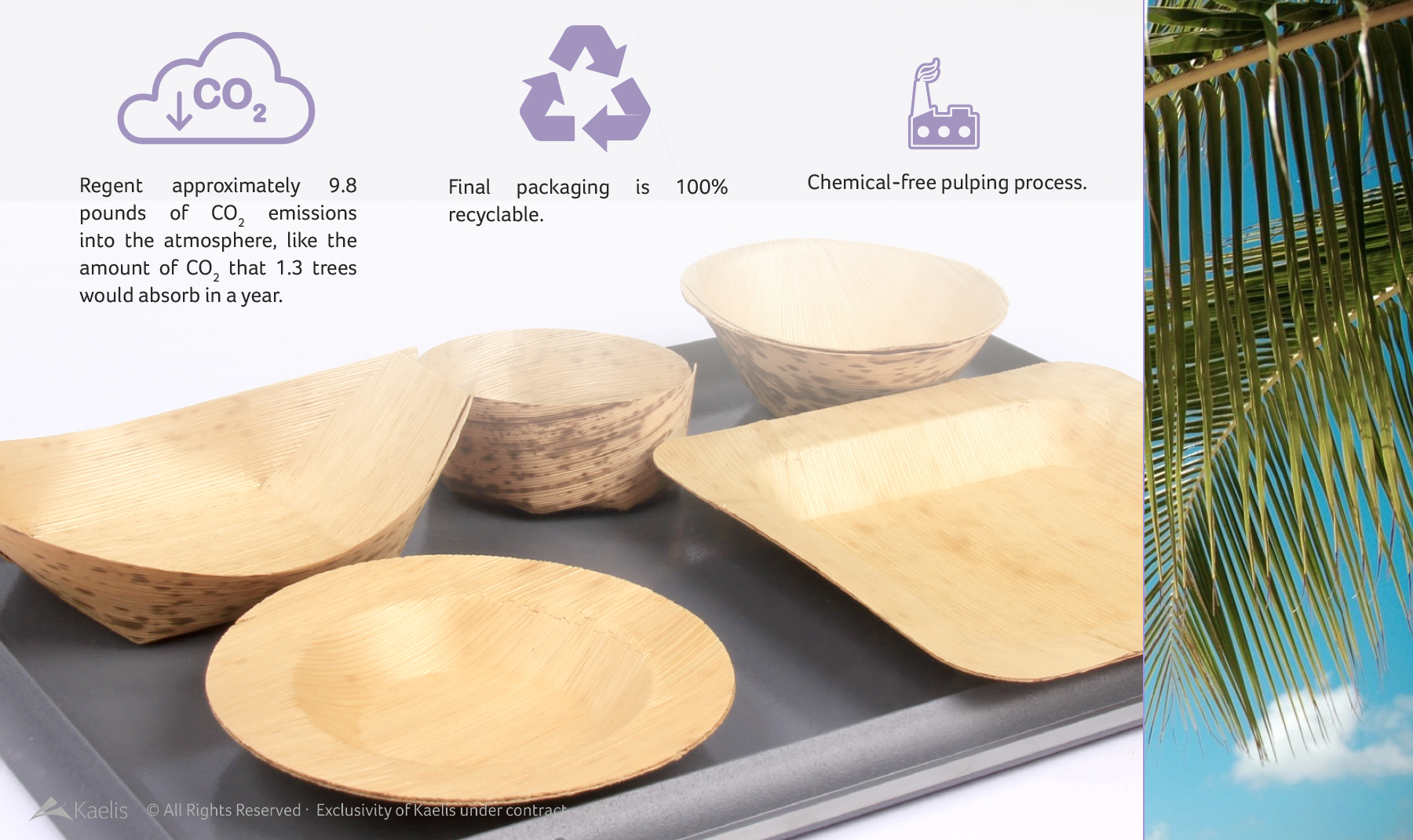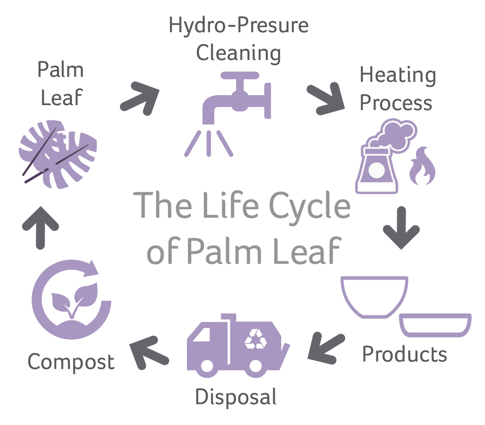 The palm leaf products are being produced with sustainable resources (made from fallen leaves, 100% natural) through eco-friendly processes (no chemicals or additives used).